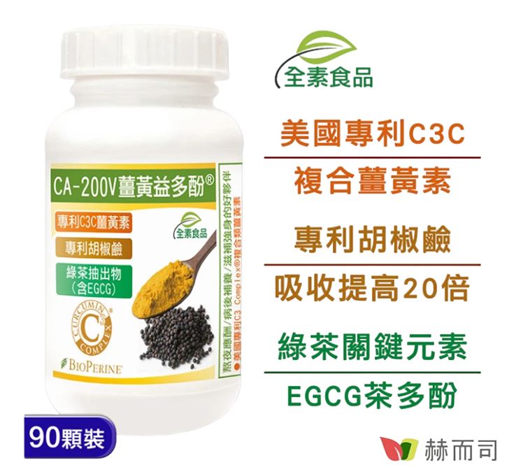 赫而司 95%濃縮C3薑黃素胡椒鹼兒茶素( 共90顆 二代專利複合薑黃益多酚EGCG素食膠囊)